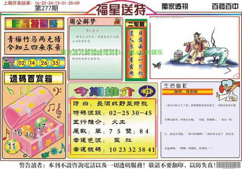 277期:绝杀5码【13.16.18.32.40】开:虎16错 |